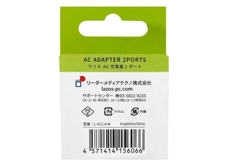 リーダーメディアテクノ AC充電器 USB-A 2ポート 2.4A 12W L-AC2.4-W