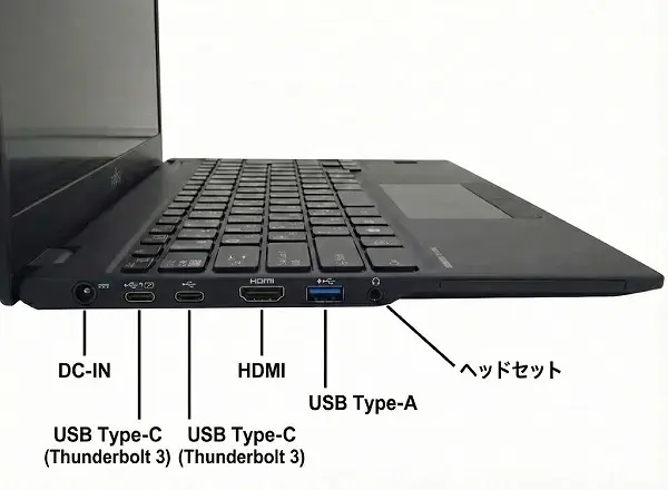 接続端子 USB 3.0 HDMI端子 SDカードスロット LANポート(100/1000 BASE) USB Type-C Thunderbolt 3 (USB Type-C) ヘッドフォン・マイク兼用端子