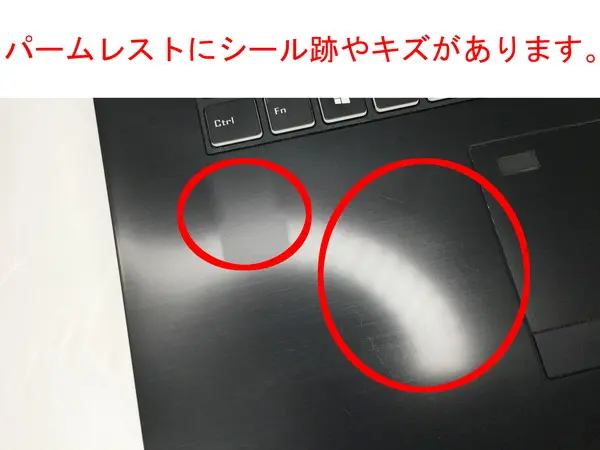 【訳あり理由:パームレストにキズ、擦過痕、シール跡があります。天板に擦過痕があります。